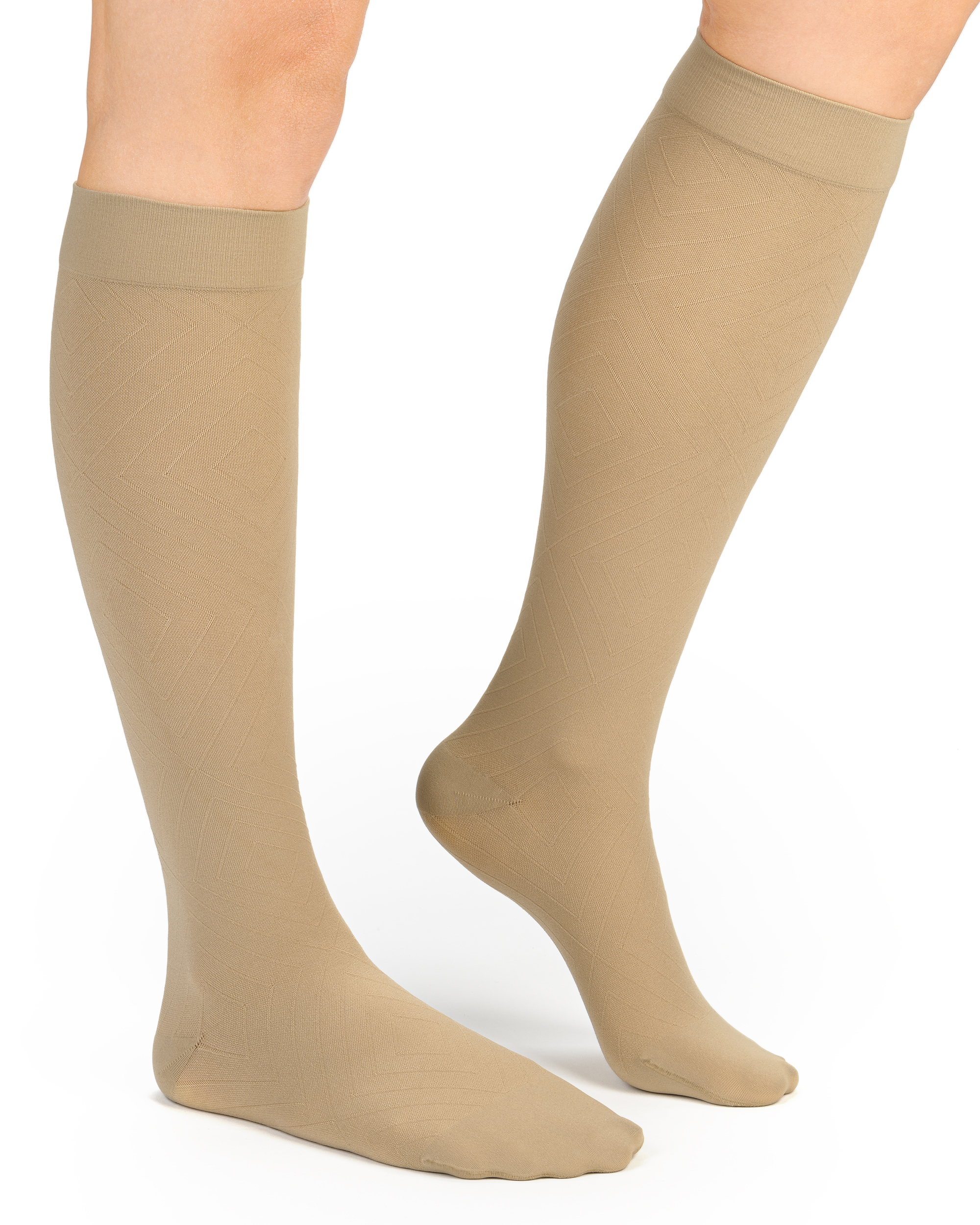 COMPRESSANA DIAMONDS mit eingestrickten Rauten und zarten und feinen Maschen setzen Beine wunderschön in Szene. Die moderne Art der Kompressionstherapie: Unsichtbare Wirkung – sichtbar attraktiv! COMPRESSANA DIAMONDS sind in Seriengröße erhältlich.