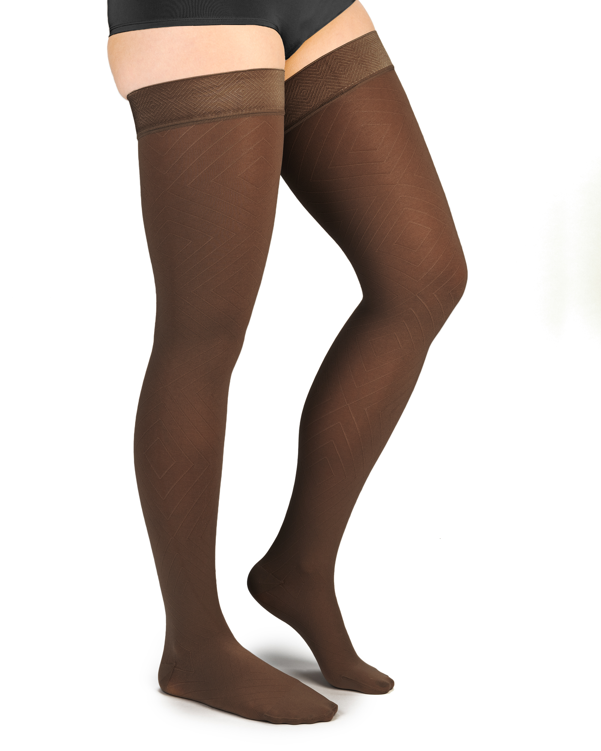 COMPRESSANA DIAMONDS mit eingestrickten Rauten und zarten und feinen Maschen setzen Beine wunderschön in Szene. Die moderne Art der Kompressionstherapie: Unsichtbare Wirkung – sichtbar attraktiv! COMPRESSANA DIAMONDS sind in Seriengröße erhältlich.