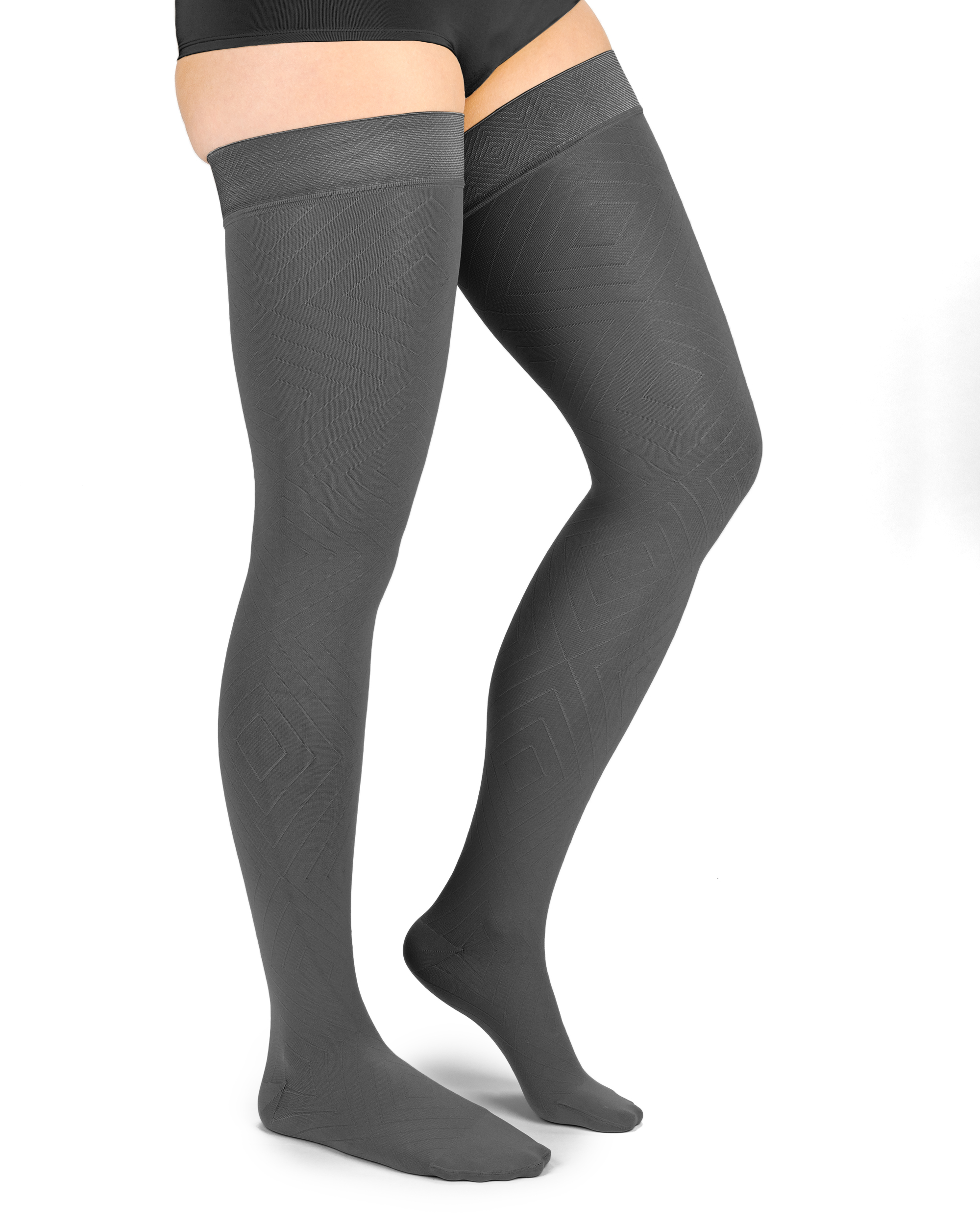 COMPRESSANA DIAMONDS mit eingestrickten Rauten und zarten und feinen Maschen setzen Beine wunderschön in Szene. Die moderne Art der Kompressionstherapie: Unsichtbare Wirkung – sichtbar attraktiv! COMPRESSANA DIAMONDS sind in Seriengröße erhältlich.
